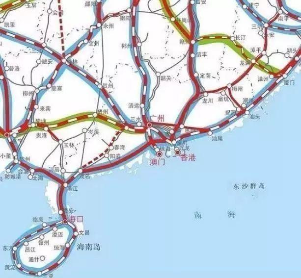 7、包(银)海通道。包头——延安——西安——重庆——贵阳——南宁——湛江——海口(三亚)高速铁路,包括银川——西安以及海南环岛高速铁路。