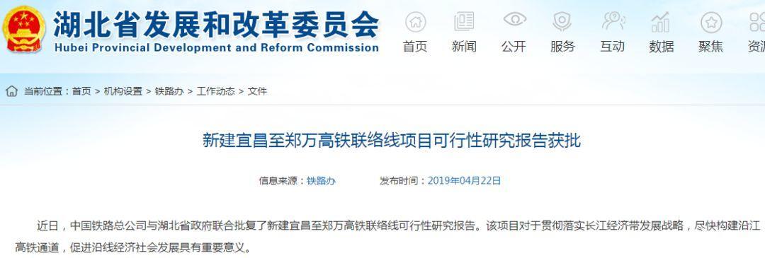 4月22日,湖北省发改委公布新建宜昌至郑万高铁联络线项目可行性研究报告获批的消息。