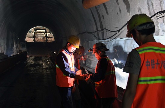 近日,玉磨铁路大尖山隧道建设在加紧推进。担负该项目的中铁十八局集团有限公司的建设者克服地质环境复杂等困难,稳步推进工程进展。