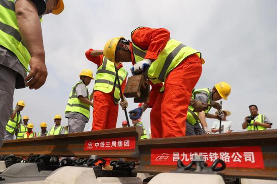 正线钢轨铺设全部完成