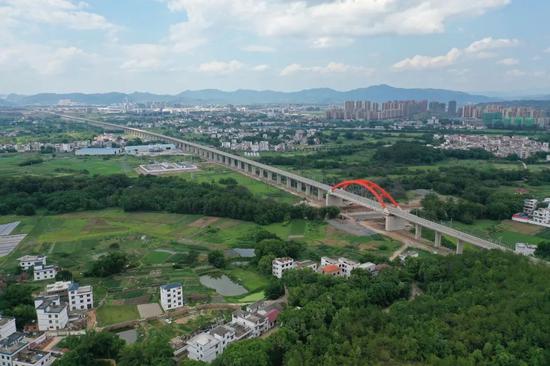 这条铁路建成通车后,将进一步缩短江西与粤港澳大湾区间的时空距离,南昌经赣州到深圳的铁路最快旅行时间将由现在的9.5小时缩短至3.5小时左右,对于完善区域路网布局,提高通道运输能力和服务质量,促进赣闽粤原中央苏区振兴发展,带动沿线经济社会发展,具有重要意义。