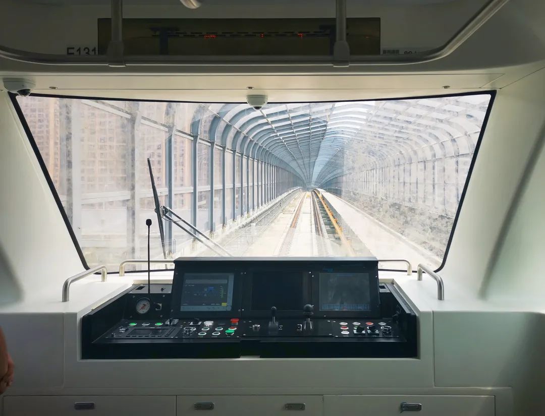 列车能够按计划自动完成远程唤醒、上电自检、发车离站、到站开闭车门、无人折返、运营后回库休眠、自动洗车等全自动场景。列车取消了传统地铁车辆驾驶室,采用与客室一体化设计,在车头可以见到列车全速前行的全过程,如同穿梭在时空隧道。