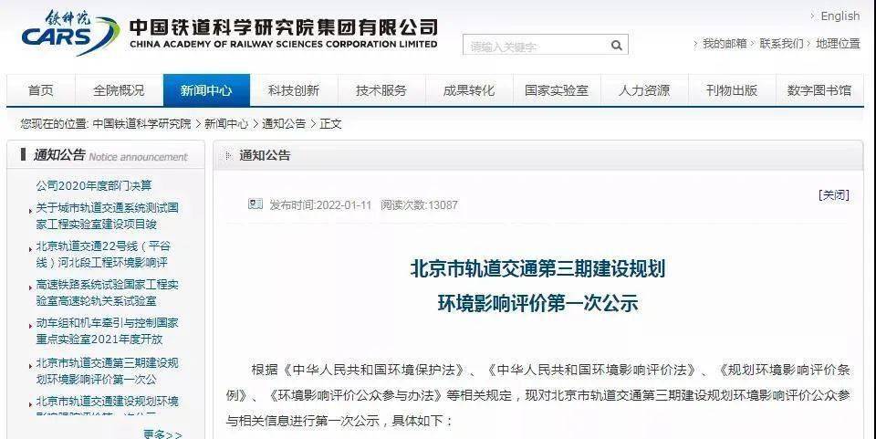 近日,铁科院对北京轨道交通第三期建设规划环境影响评价公众参与相关信息进行第一次公示。根据公示信息,《北京市轨道交通第三期建设规划(2022-2027年)》共包含10个建设项目。具体为:7号线三期、11号线二期、14号线三期(西延)、15号线二期、17号线二期(支线)、19号线二期、20号线一期、25号线三期(丽金线)、M101线一期、S6线(新城联络线)。