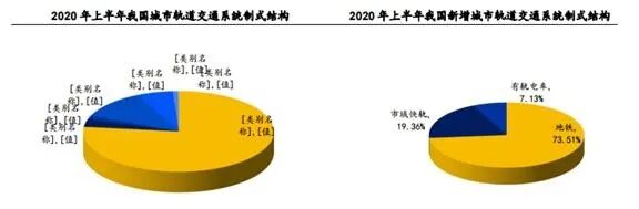 至 2020 年上半年,我国内地累计 41 个城市开通城市轨道交通,运营里程 6918 公里。其中地铁运营里程 5314 公里,占比 76.8%;其他制式合计运营里程 1604 公里,占比 23.2%。2020 年上半年新增 5 条运营线路 181 公里,其中新增地铁 133 公里,占比 73.5%;新增市域快轨 35 公里,占比 19.4%;新增有轨电车 13 公里,占比 7.1%。与发达国家相比,我国市域快轨、有轨电车还有很大发展空间;目前地铁仍占城市轨道交通的绝大部分,是城市快速轨道交通的先驱。