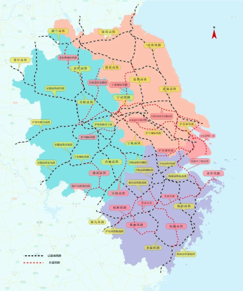 2023年,江苏南沿江城际铁路、杭昌高铁黄昌段(安徽段)、金华至宁波铁路、宁波铁路枢纽庄桥至宁波段三四线、合肥派河港物流基地等5个项目具备开通条件;计划开工杭州萧山机场联络线、北仑支线复线等5个项目,续建22个项目。
